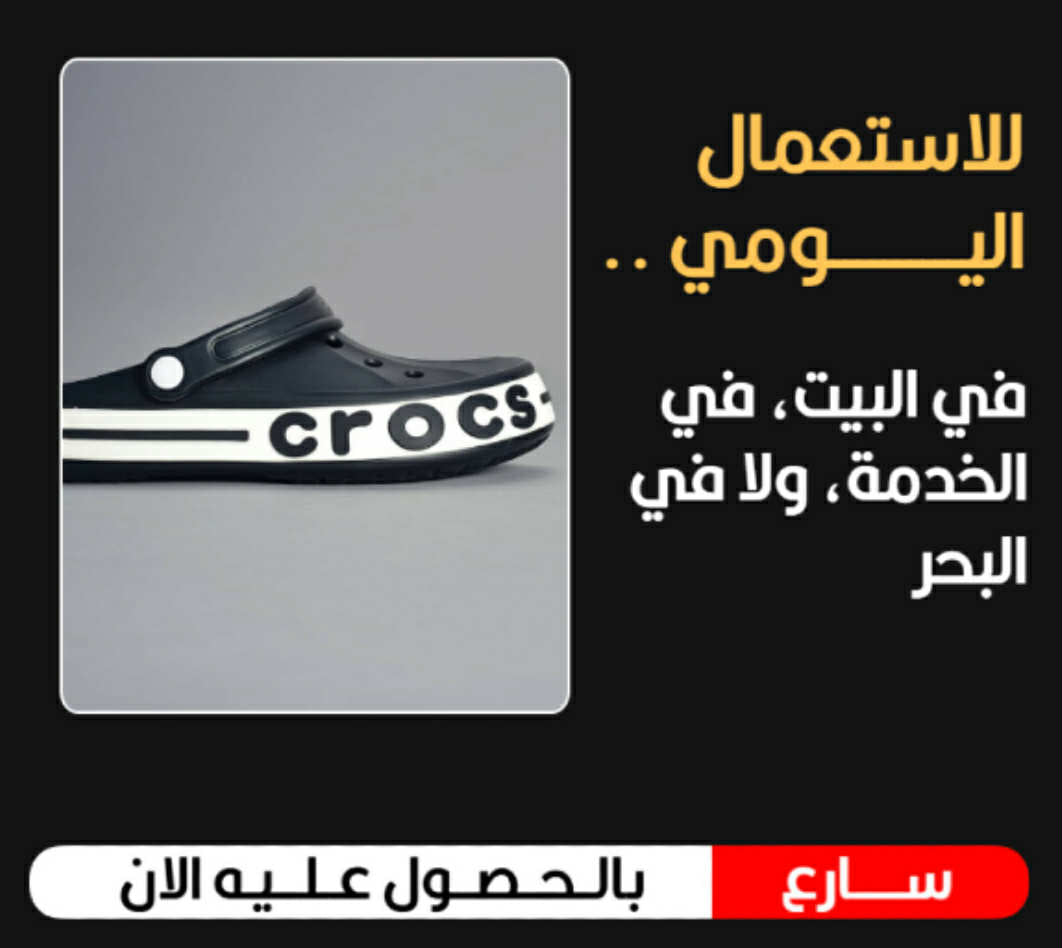 🩴 ستايل صيفي :ألوان منعشة وتصميم عصري يليق للبحر وحتى للخرجات.🌬️ تهوية ممتازة:ثقوب ذكية تسمح للهواء يدخل، ما يعرّقش. يناسب كل الأعمار:رجال، نساء، وصغار… كروكس للجميع.